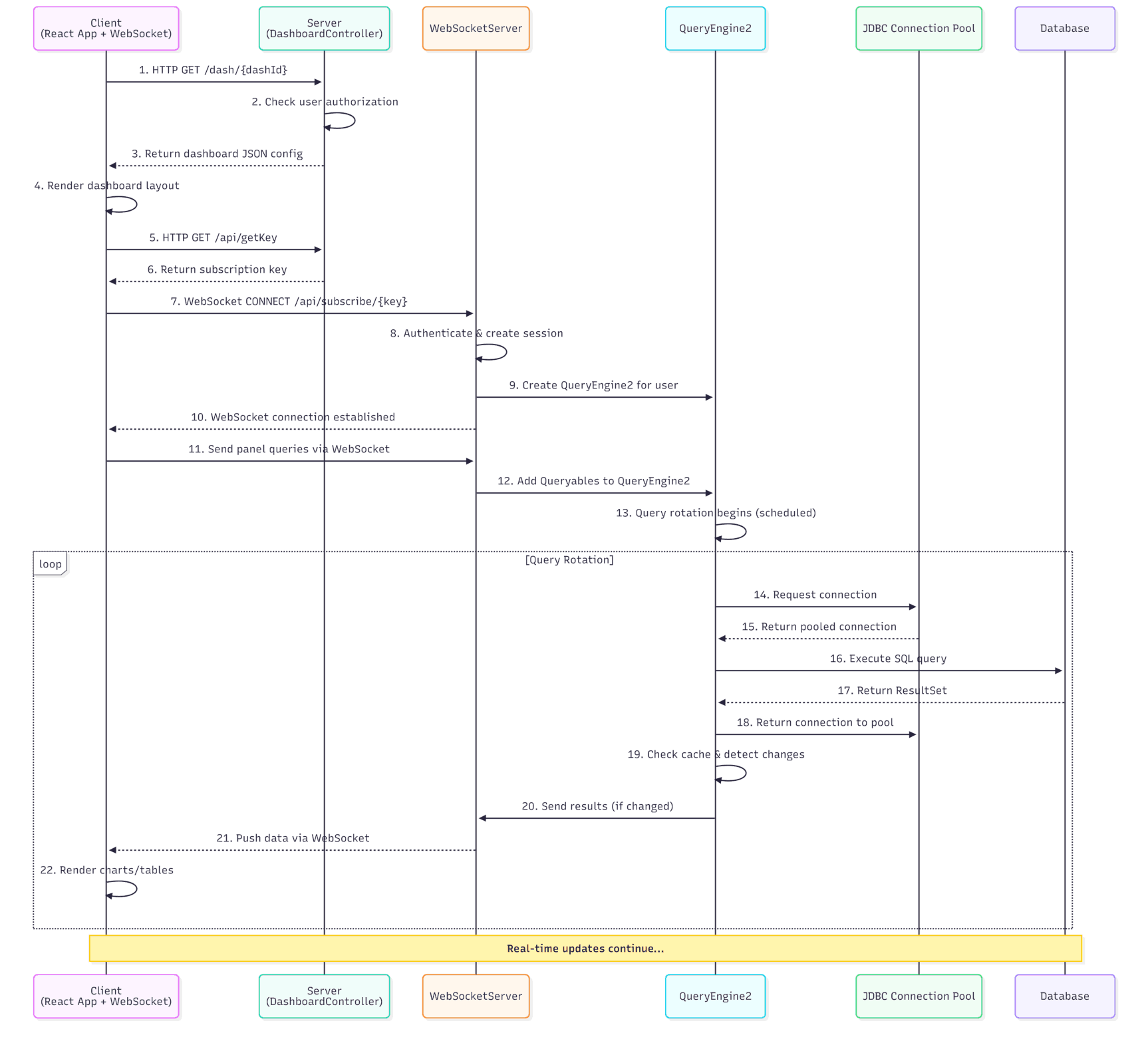 - When a dashboard is opened, it opens a WebSocket connection to allow real-time fast updates from the server