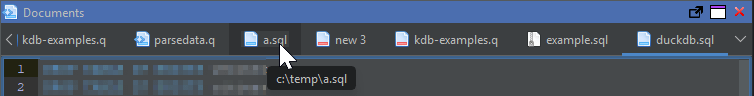 Files are shown as a tabbed interface. If you hover a tab, it will show the full path to the file.