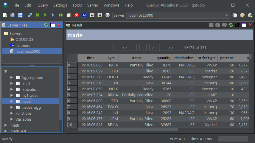 Send queries straight from within the editor to any of your servers. Kdb specific structures are handled perfectly.
